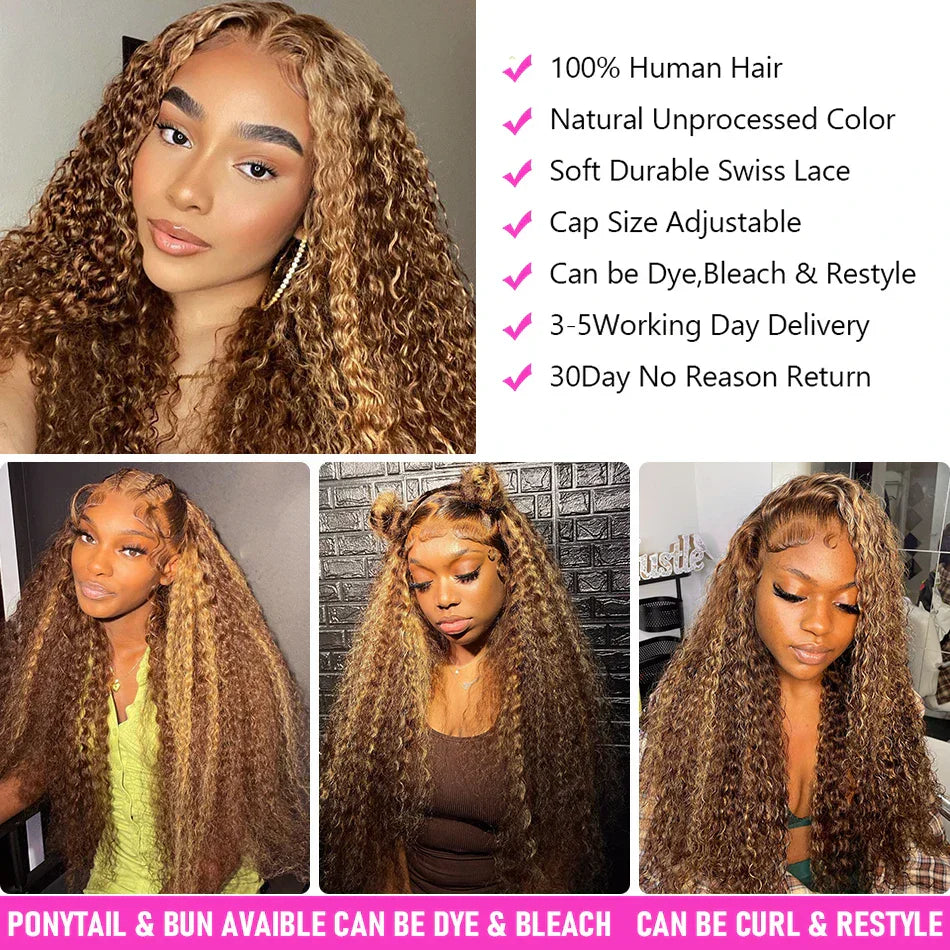 Highlight Honey Brown Curly Lace Front Human Hair