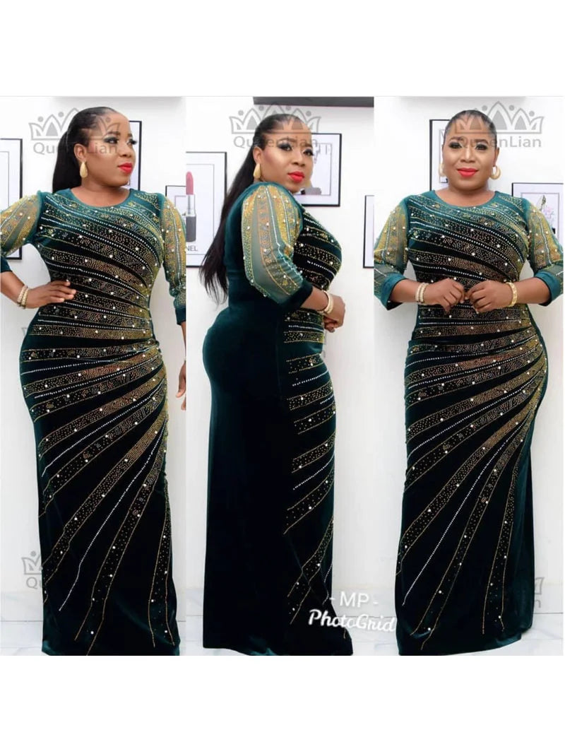 New Design African Velvet Pearl Diamond Long Tight - green / 4XL / VIP Price is backordered and will ship as soon as it is back in stock.