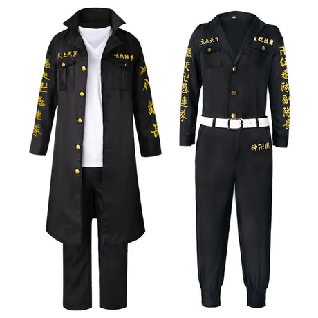 Anime Tokyo Revengers Cosplay Costume Black Embroidered Trench