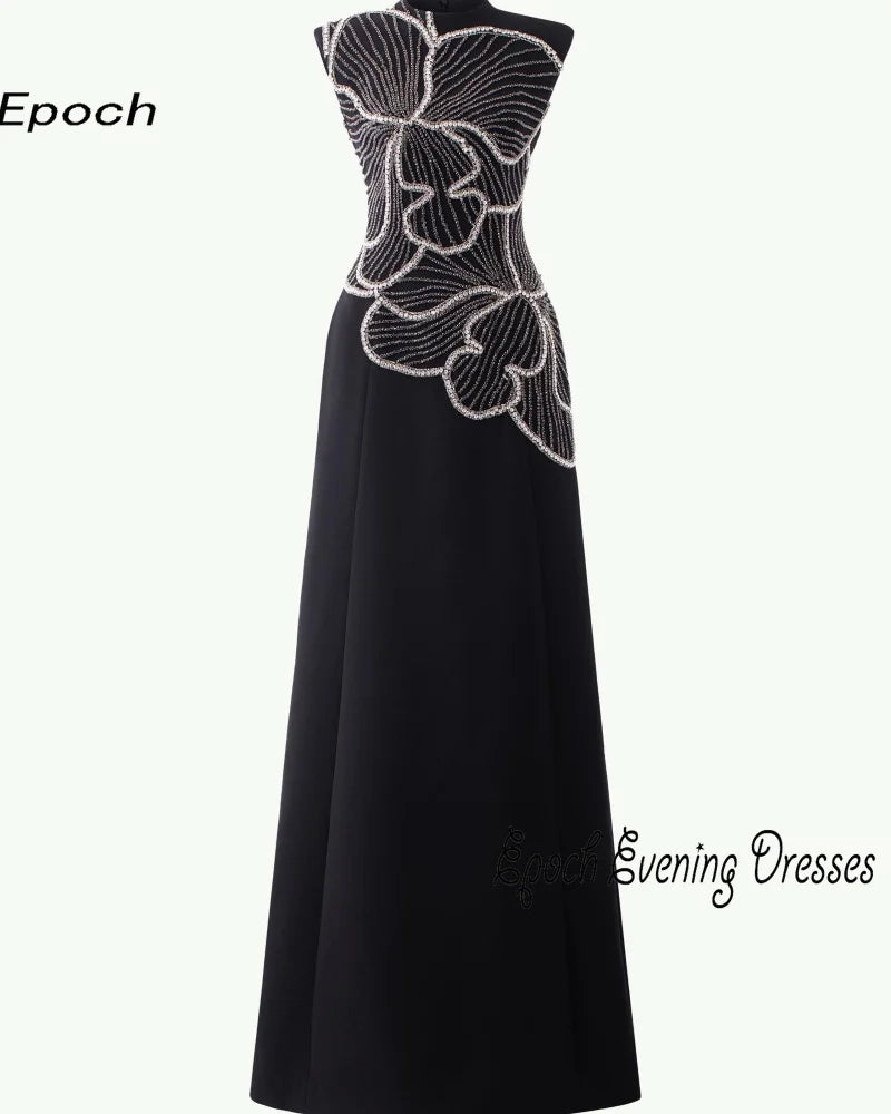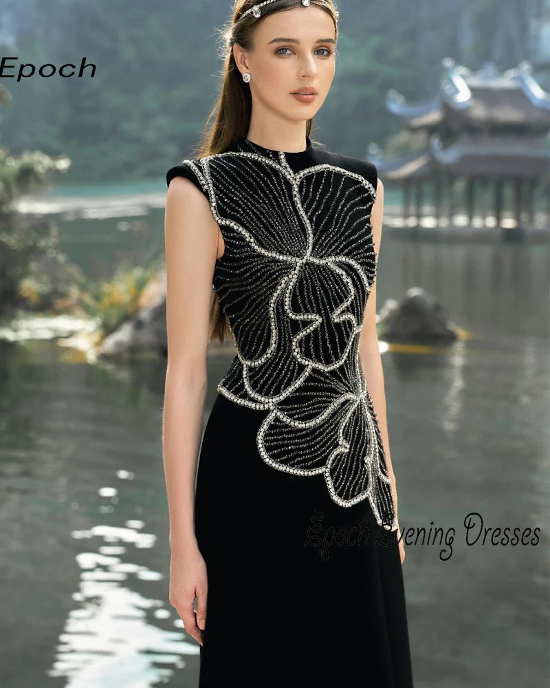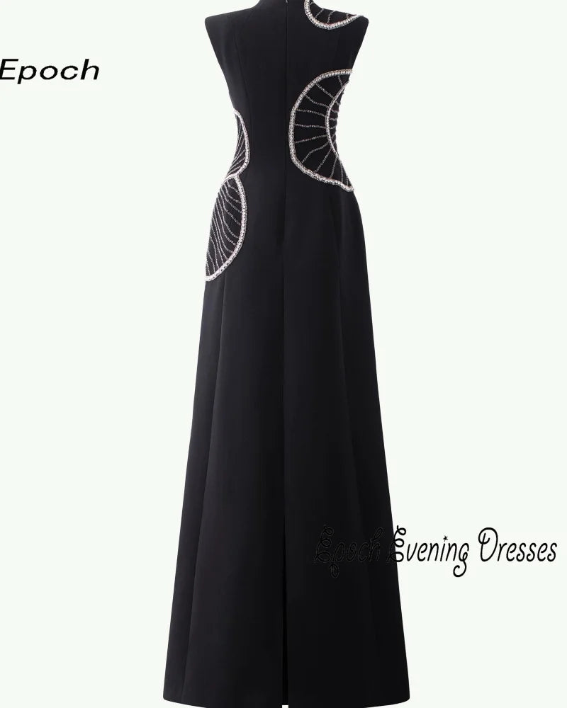O-Neck Straight Women Sexy Black Cocktail Prom Gown