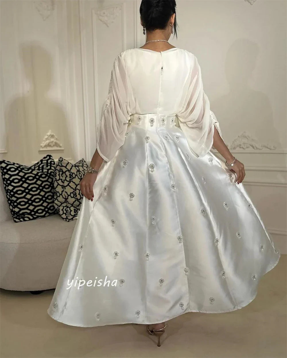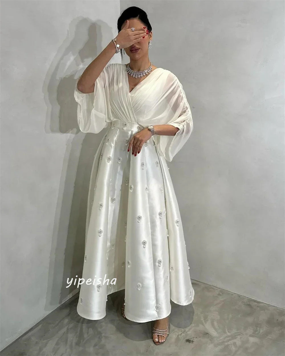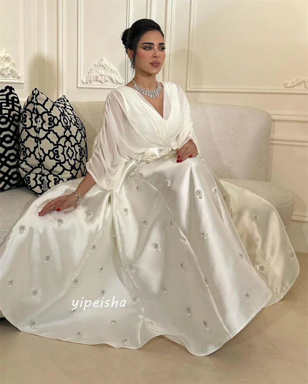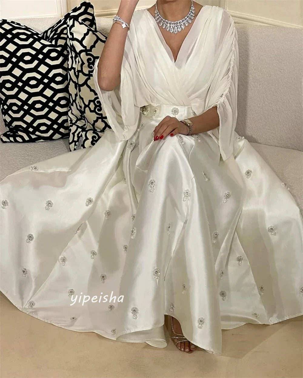 Prom Dress Saudi Arabia Satin Draped Applique Pleat