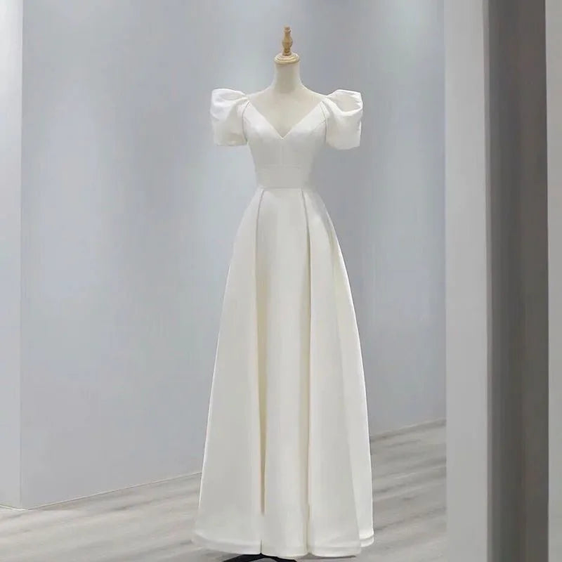 White Satin Wedding Dresses For Bride Elegant Sexy - CN / 2 / WHITE is backordered and will ship as soon as it is back in stock.