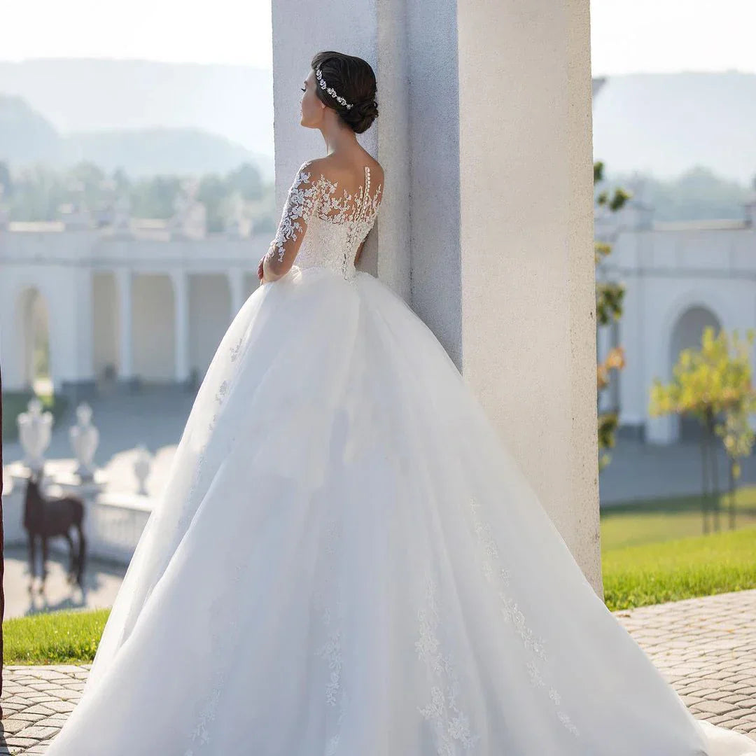 Luxury Fluffy Wedding Dresses For Woman2023 O-Eck Half