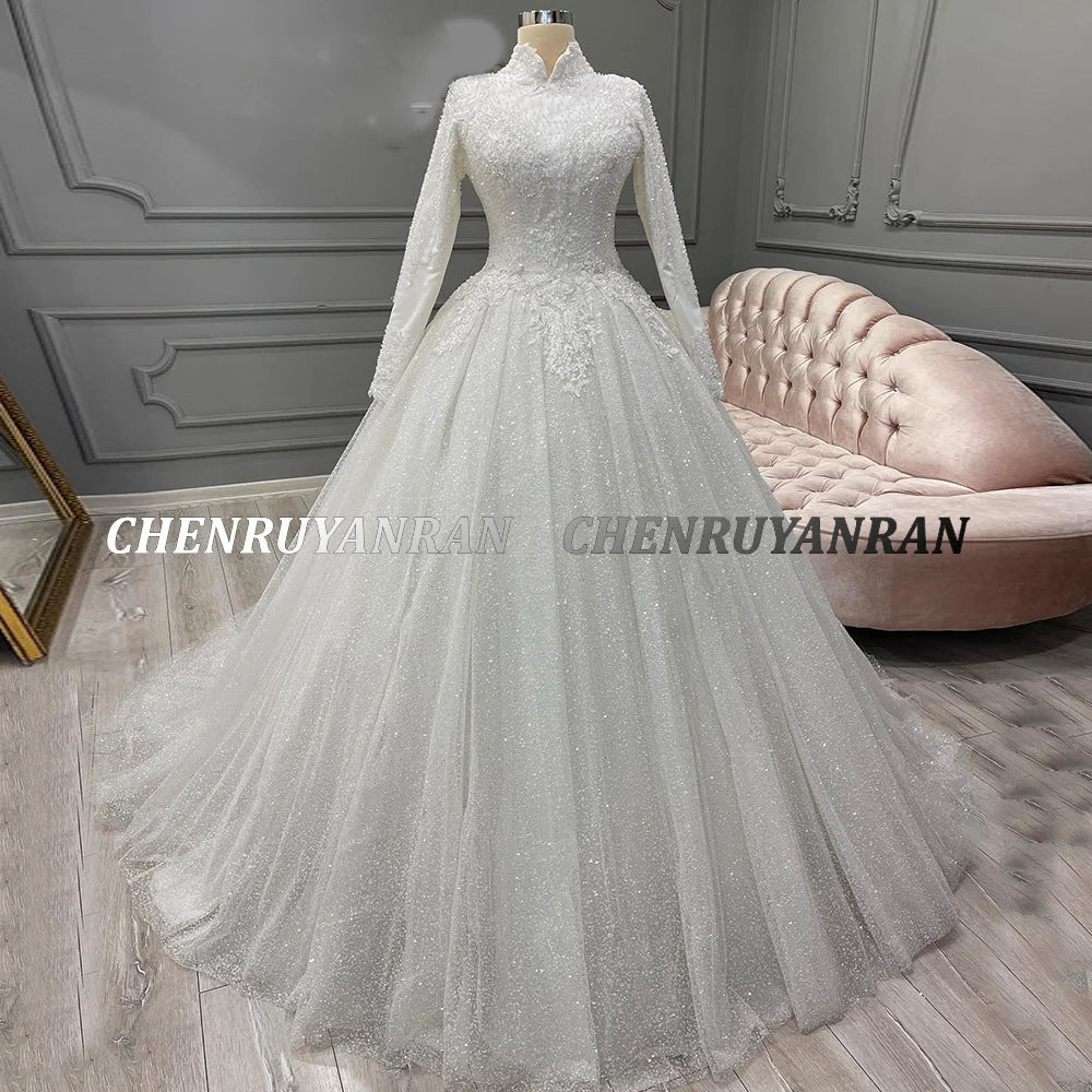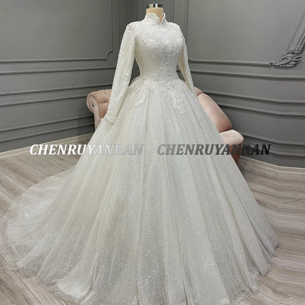 Sparkle Muslim Wedding Dresses For Women Cover Back