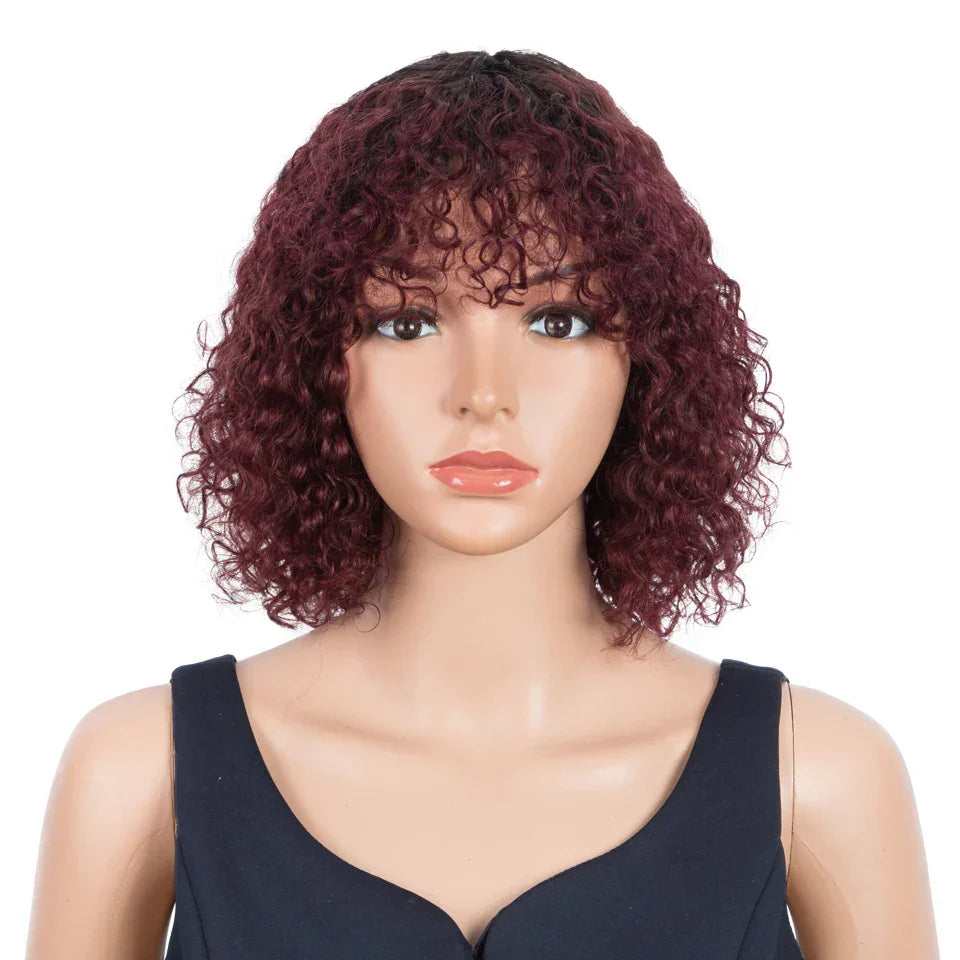 Trueme Curly Human Hair Wigs Colored Brazilian Bob