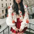 Mosimolly Cardigan Women Sweater Handmade Flower Sweater Cardigan
