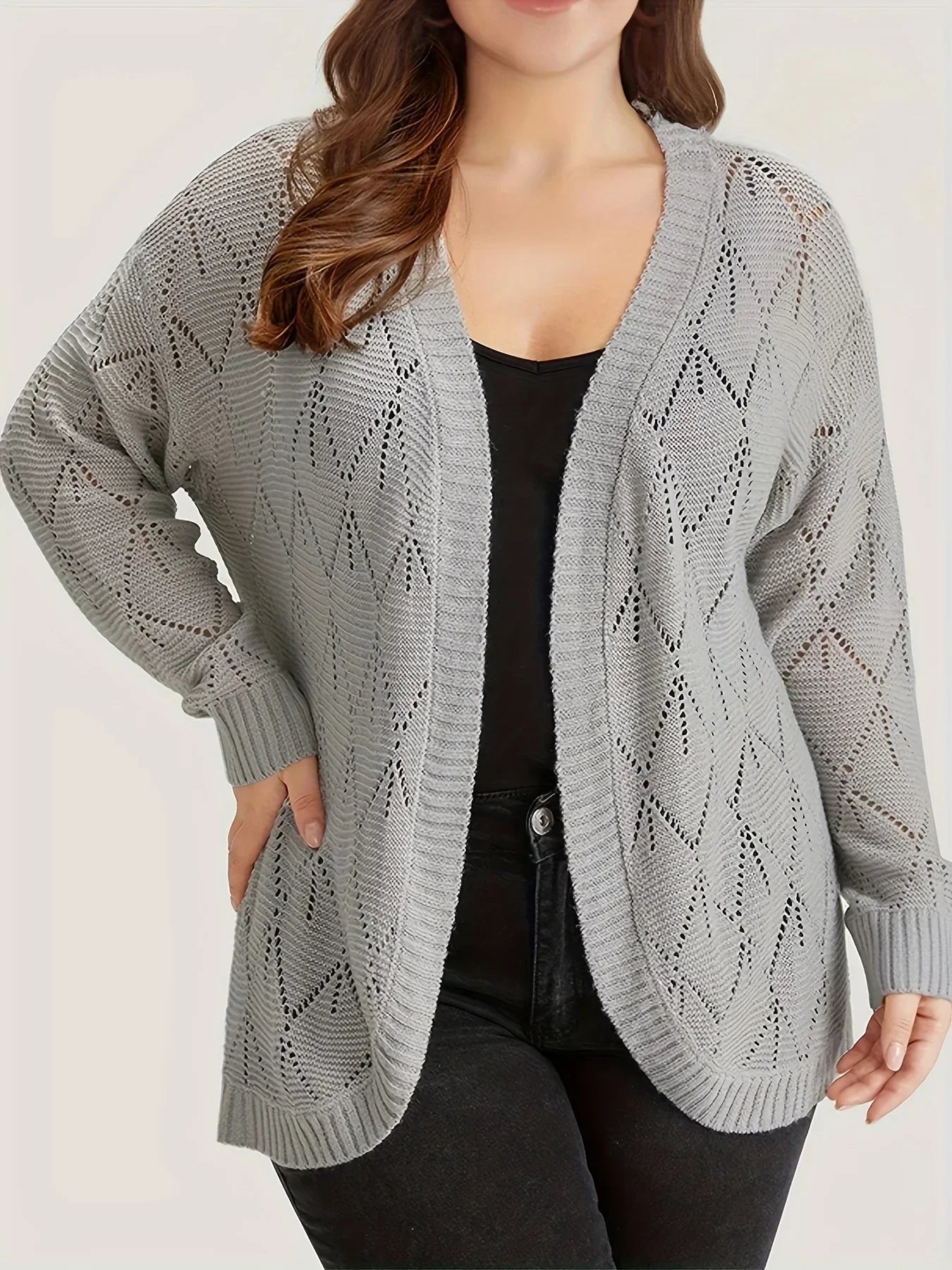 Plus Women'S Solid Hollow Out Open Front Cardigan
