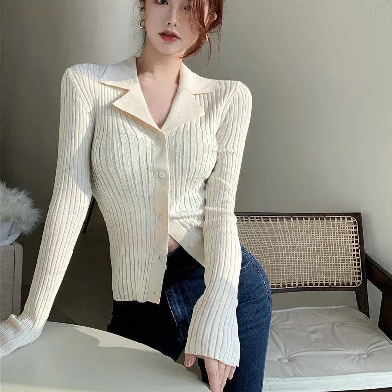 Rimocy Black Knit V Neck Cardigan Women Korean - black / One size(35kg-60kg) / VIP Price is backordered and will ship as soon as it is back in stock.