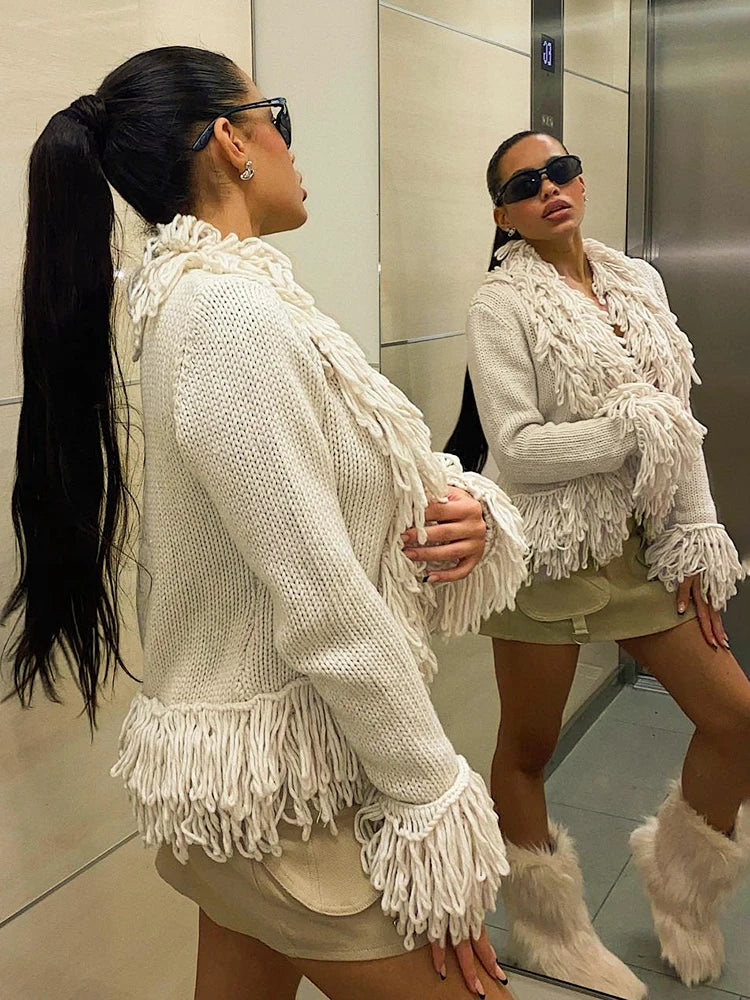 Weird Puss Autumn Tassel Cardigan Sweater Women Elegant