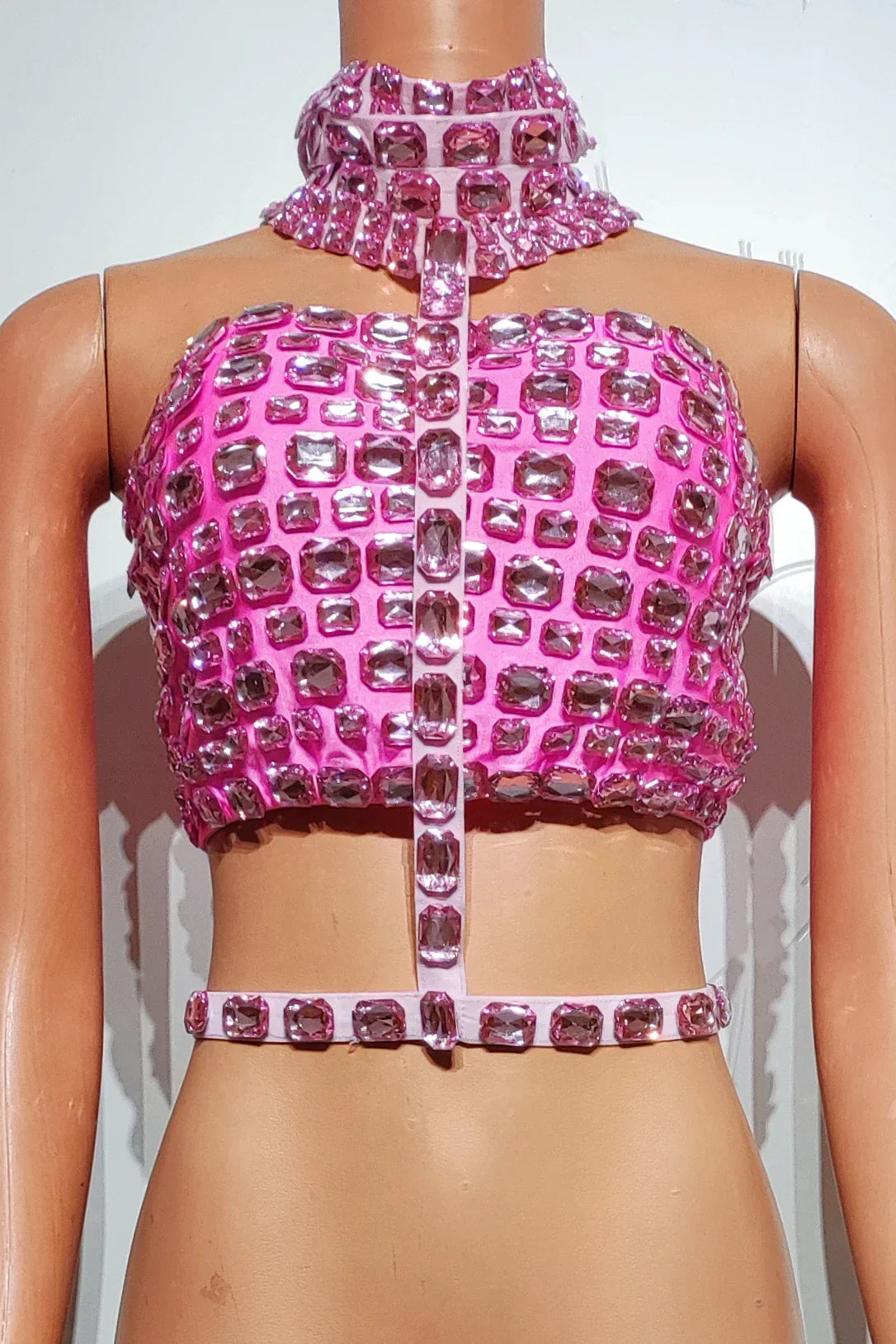 Momo Fashion Hot Diamond Tight Hanging Neck Wrapped - Pink / S / CHINA is backordered and will ship as soon as it is back in stock.