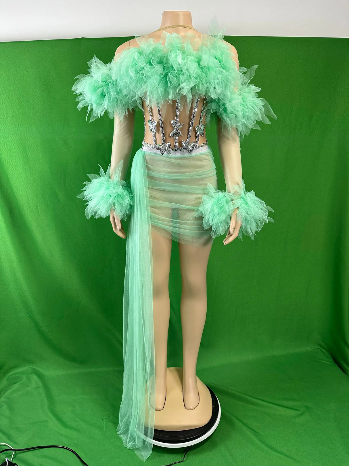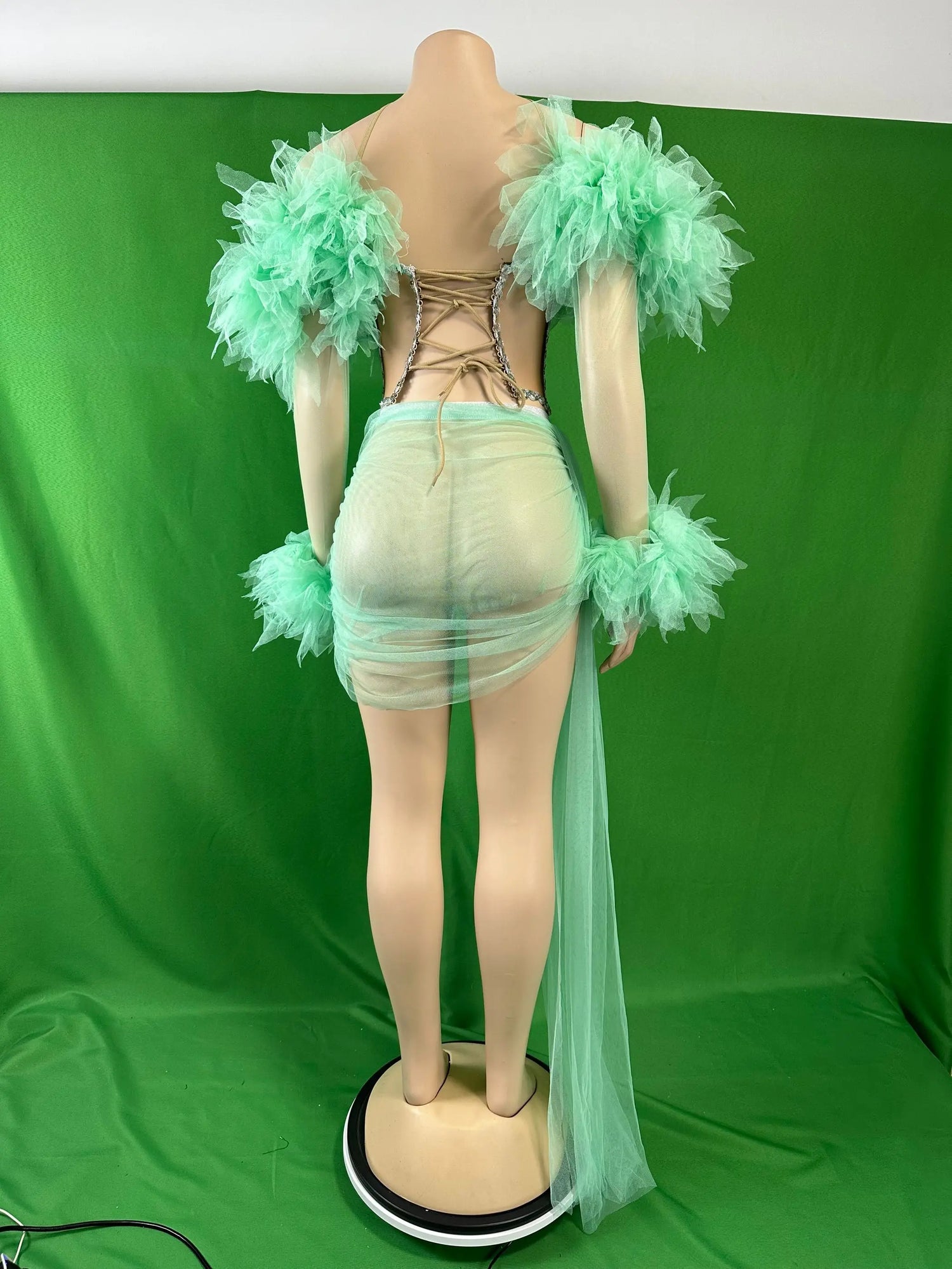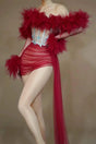 Red Mesh Sequins Pcs Set Dress Cheerleading Las