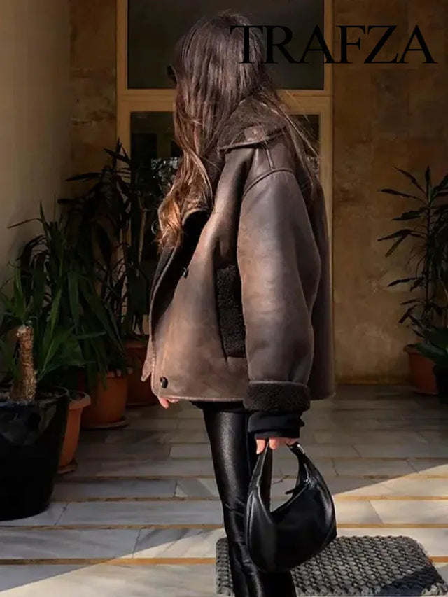 Trafza Winter Casual Solid Faux Leather Long Sleeve - Brown / S / VIP Price is backordered and will ship as soon as it is back in stock.