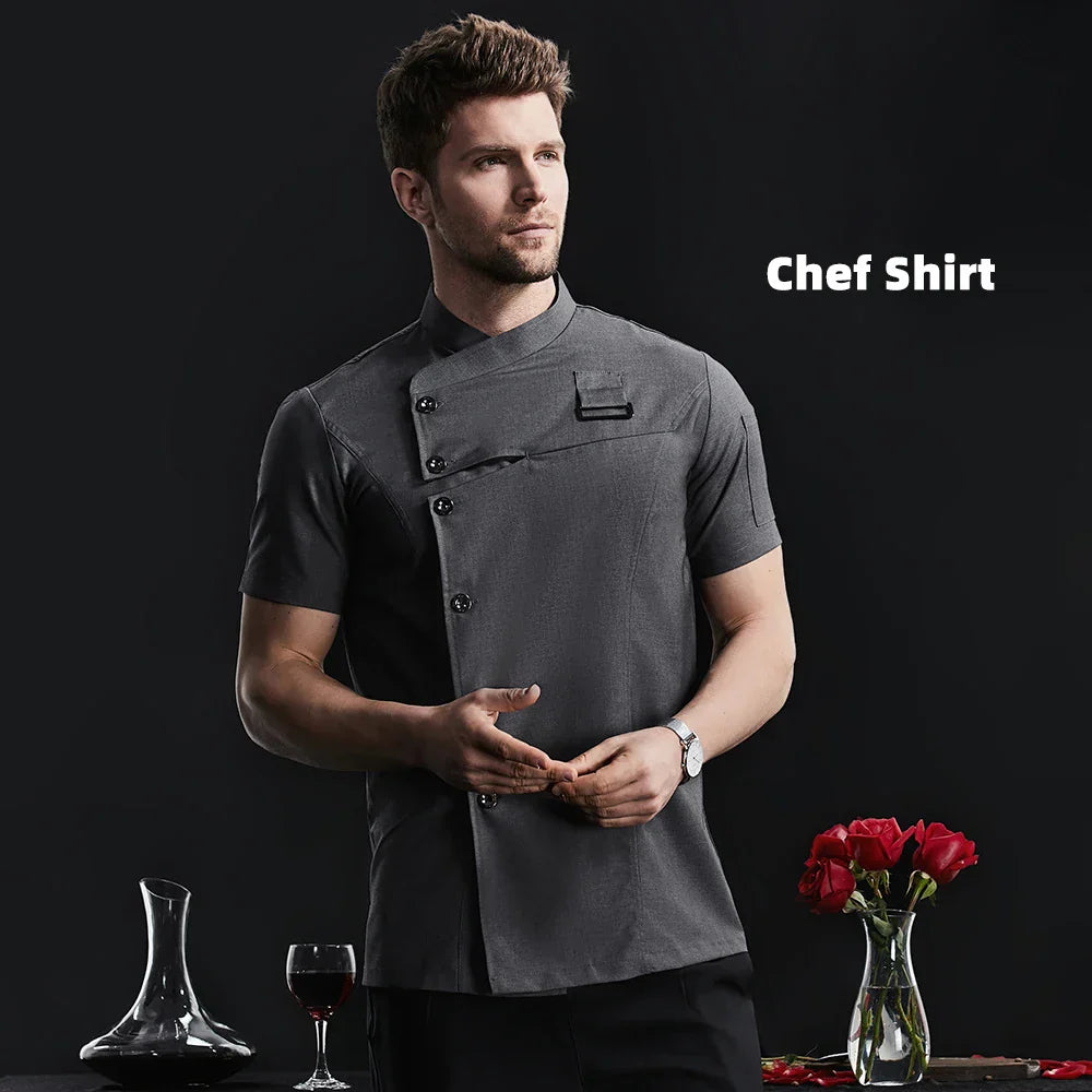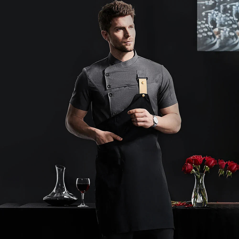 Khaki Chef Uniform Catering Workwear Head Chef Shirts - Shirt apron-Grey / XXXL(CSF-004) / VIP Price is backordered and will ship as soon as it is back in stock.