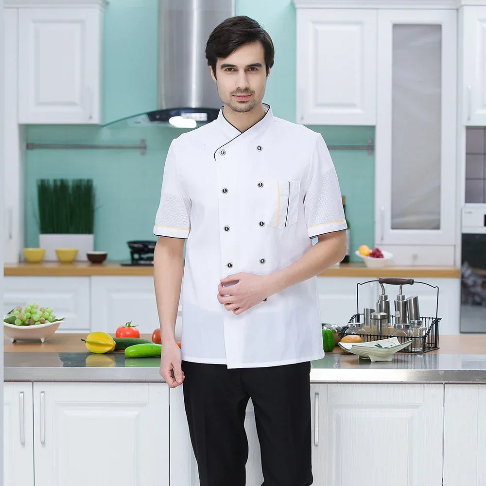 Short Sleeve Restaurant Chef Kitchen Work Uniforms Double