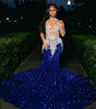 Royal Blue Sequins Beaded Appliques Prom Dresses For