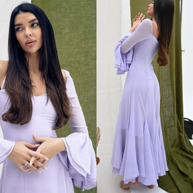Lilac Halter Chiffon Prom Dresses Arabia Fashion Flare