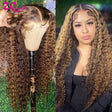 Glueless Highlight Wig Human Hair Curly Ombre Honey