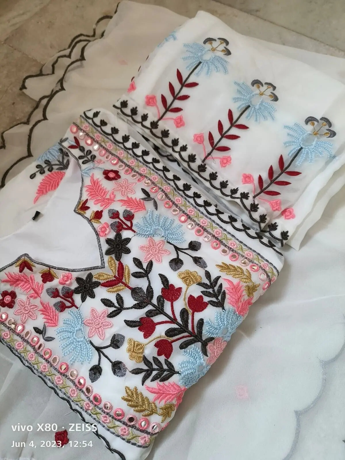 Salwar Kameez White Embroidery Wedding Party Wear Kurta