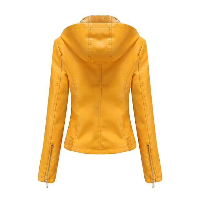 Women'S Moto Biker Zipper Jacket Hooded Faux Fur