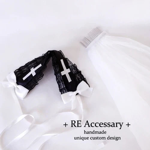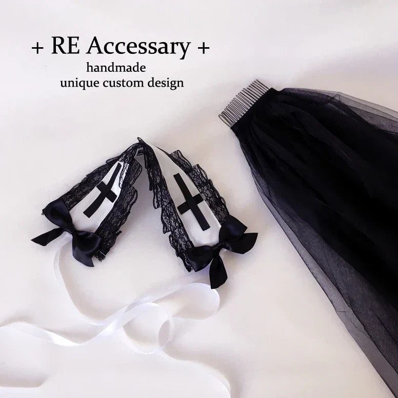 Lolita Headpiece Night Church Virgin Cross Embroidered Shawl - Hairband black veil / VIP Price is backordered and will ship as soon as it is back in stock.