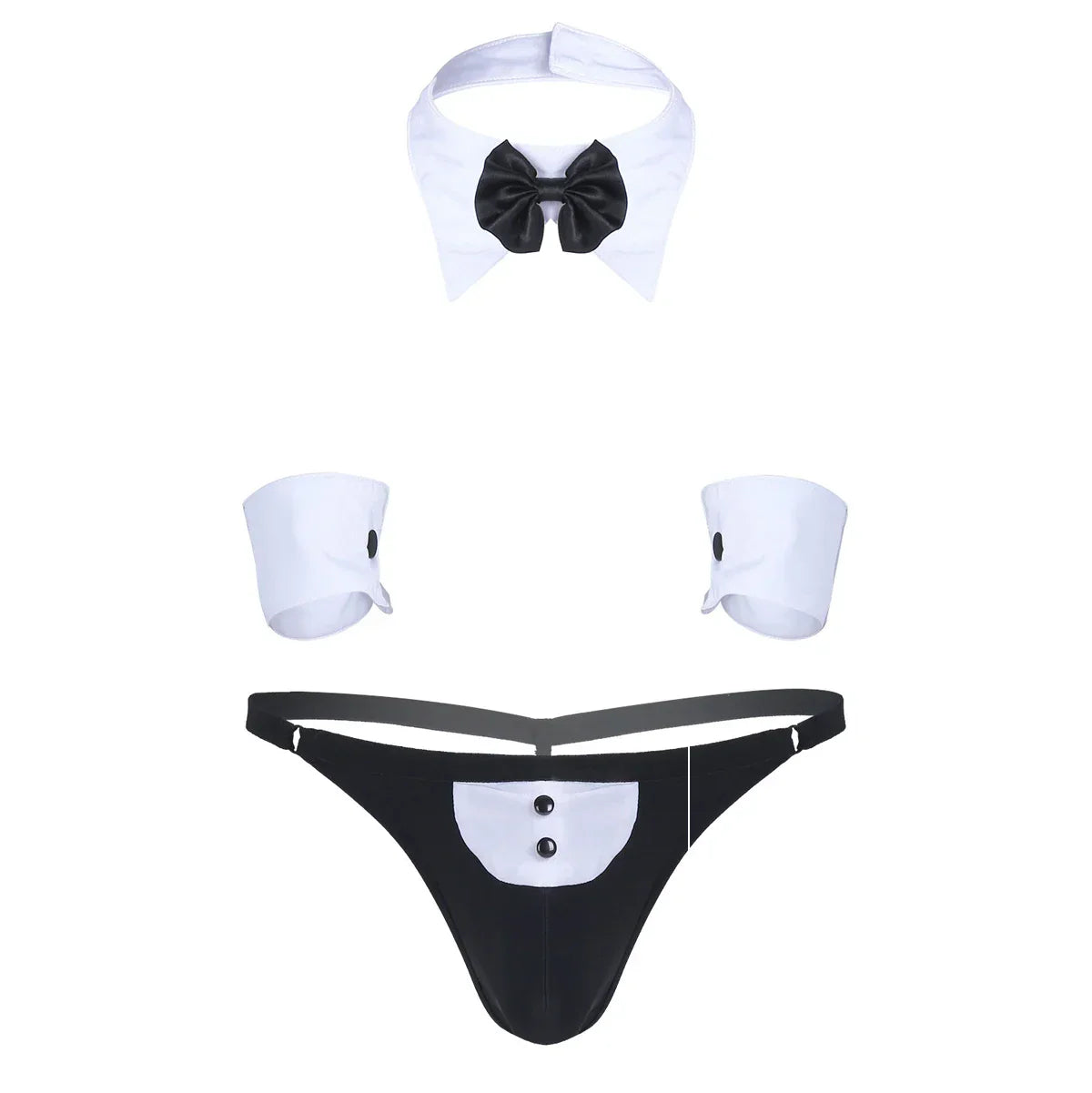 Mens Waiter Tuxedo Lingerie Sexy Cosplay Costume Role