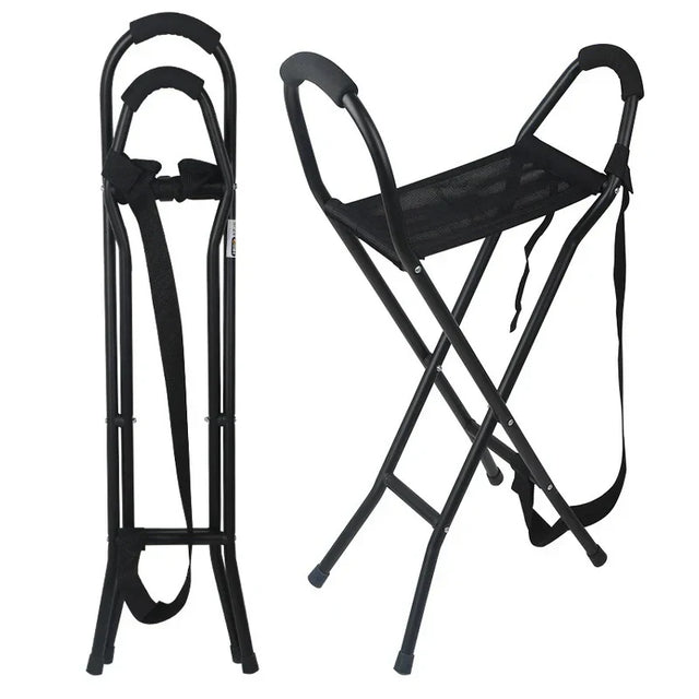 Foldable Elderly Crutch Seat Stool Lightweight Aluminum Alloy