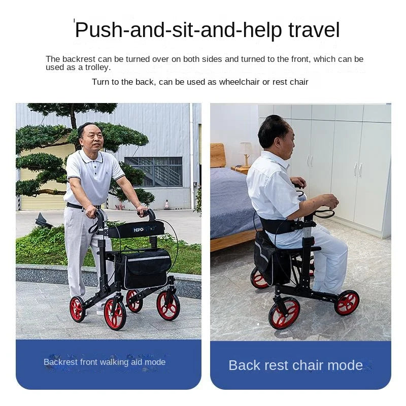Elderly Trolley Walker With Four-Wheel Mobility Aids Aluminum