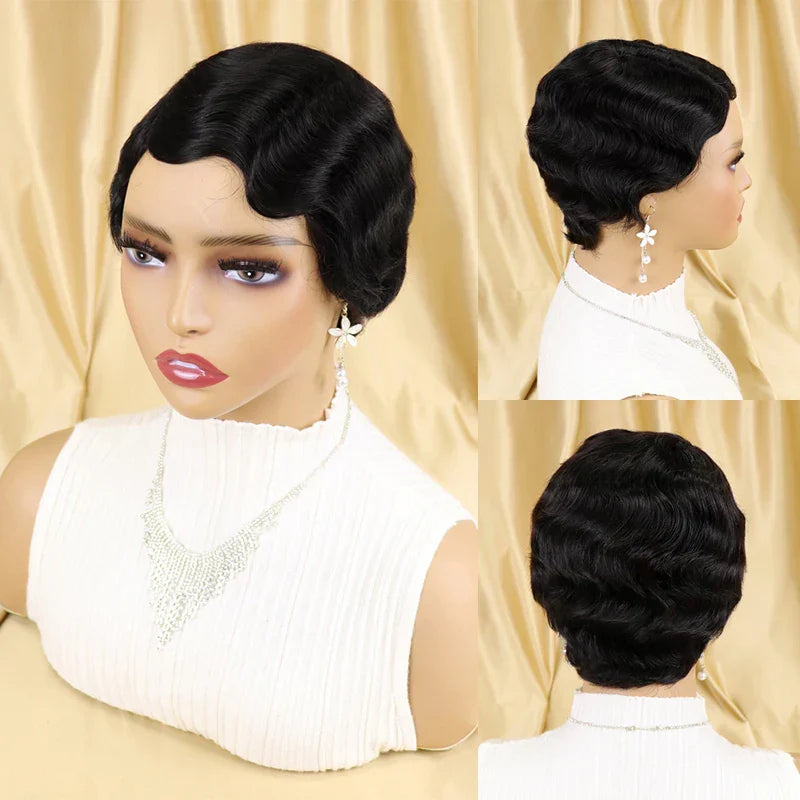 Short Finger Wave Wig Brazilian Human Hair Wig