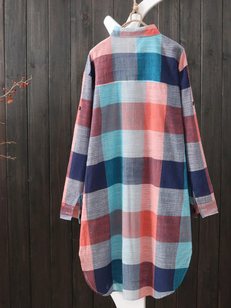 Loose Plaid Blouse Women Cotton Shirt Female Mid