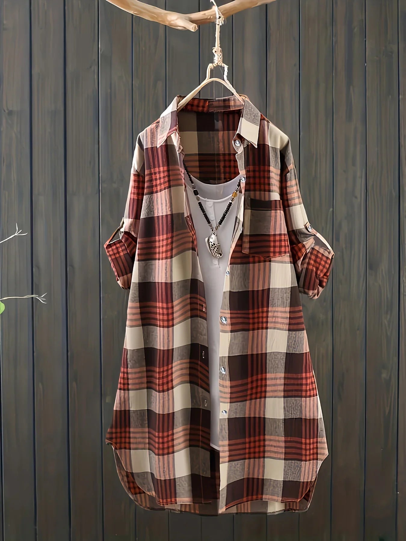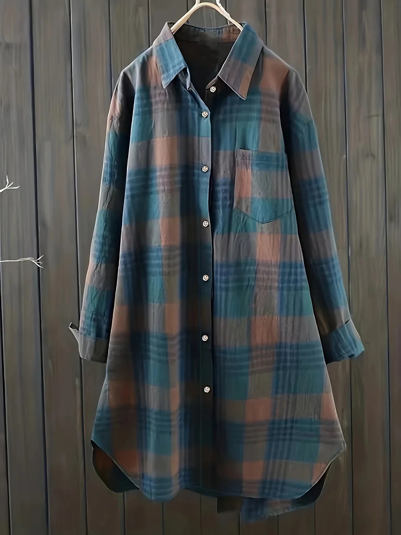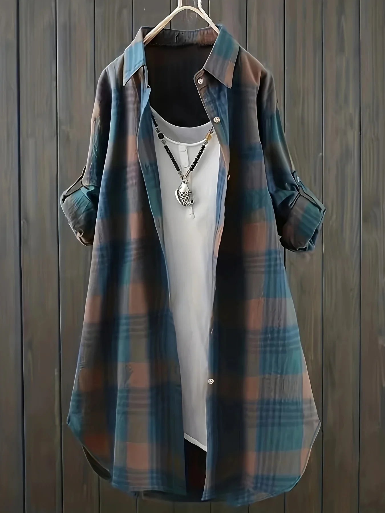 Women' Casual Plaid Button Print Long Sleeve Shirt