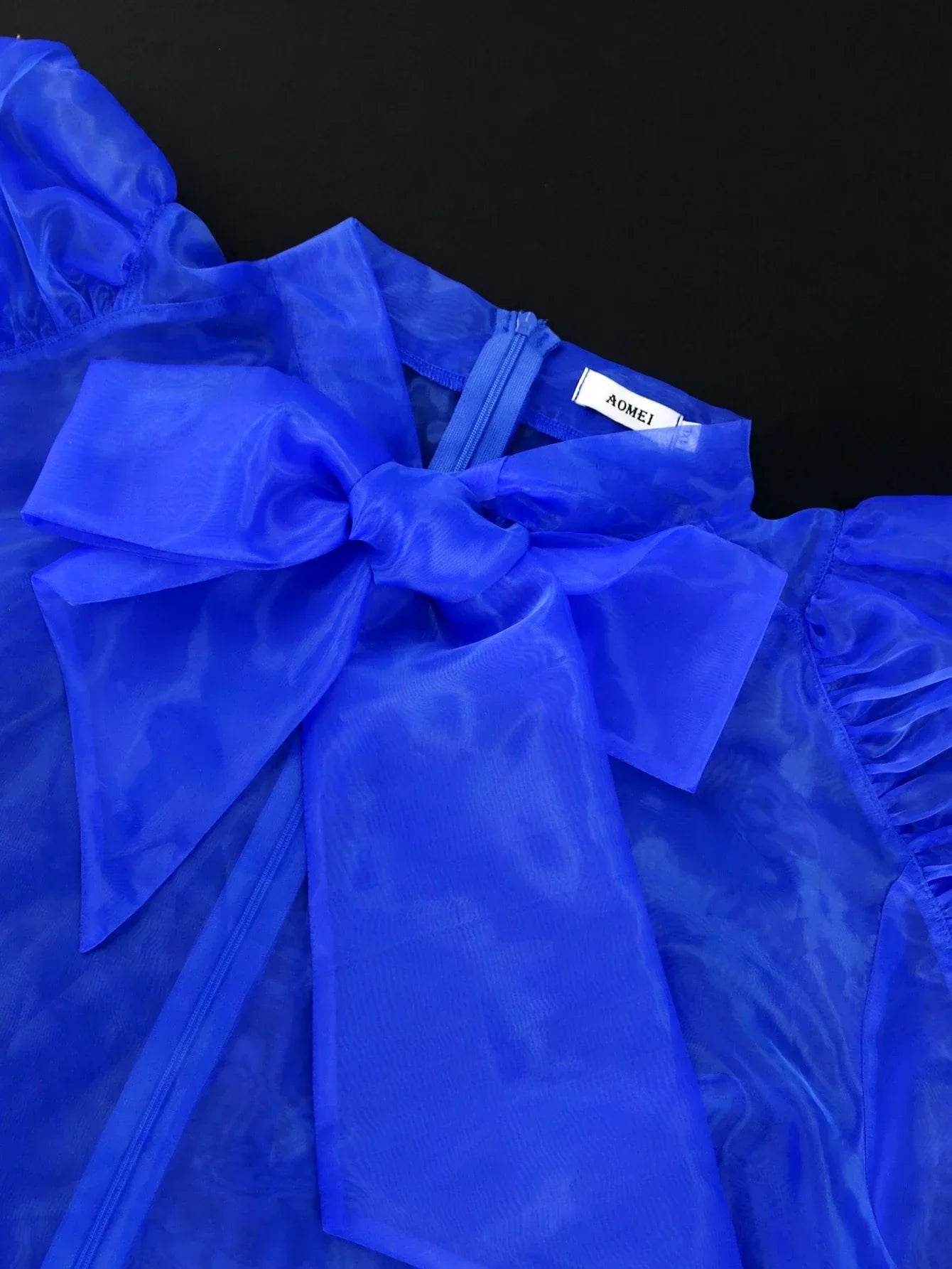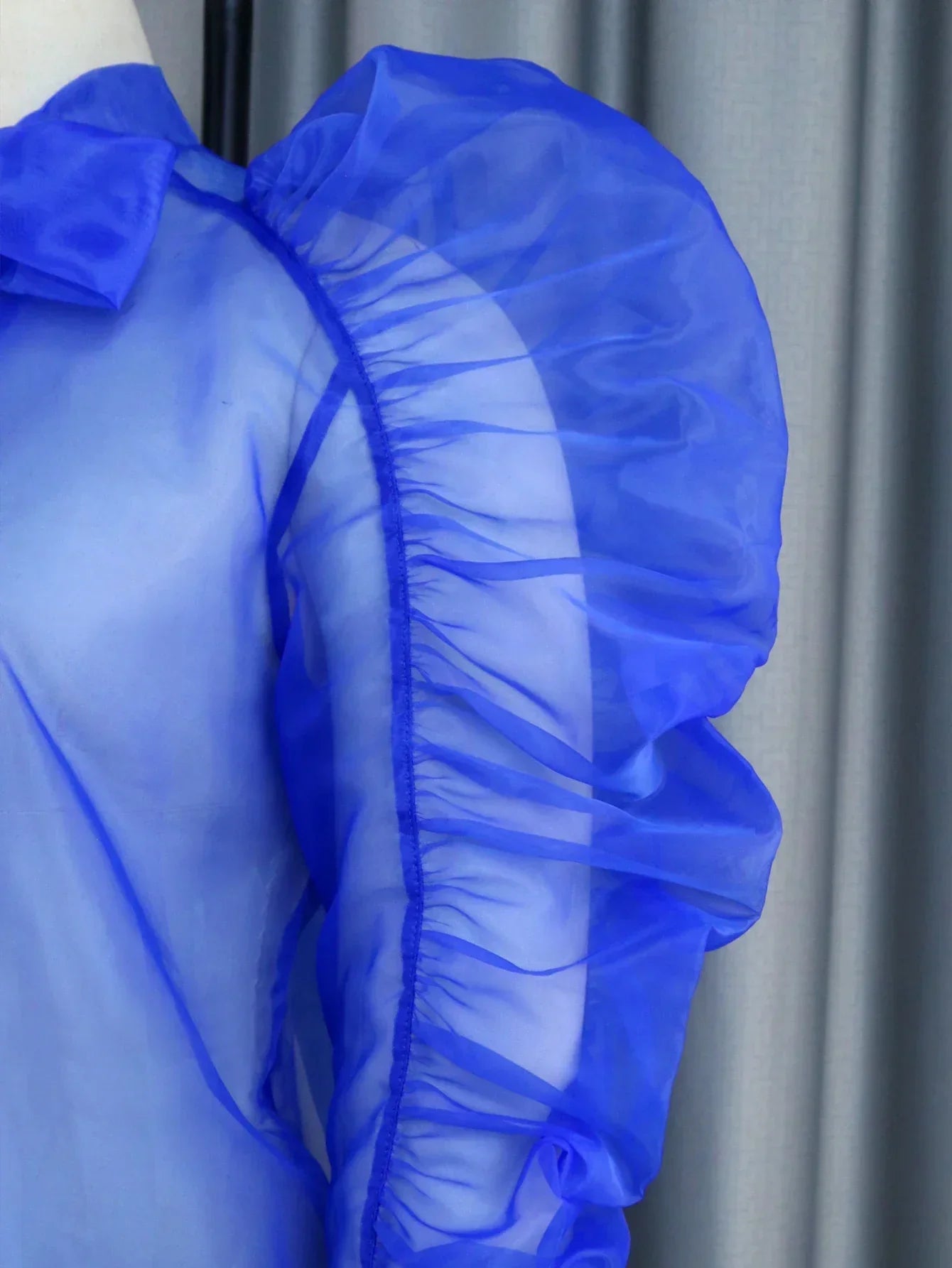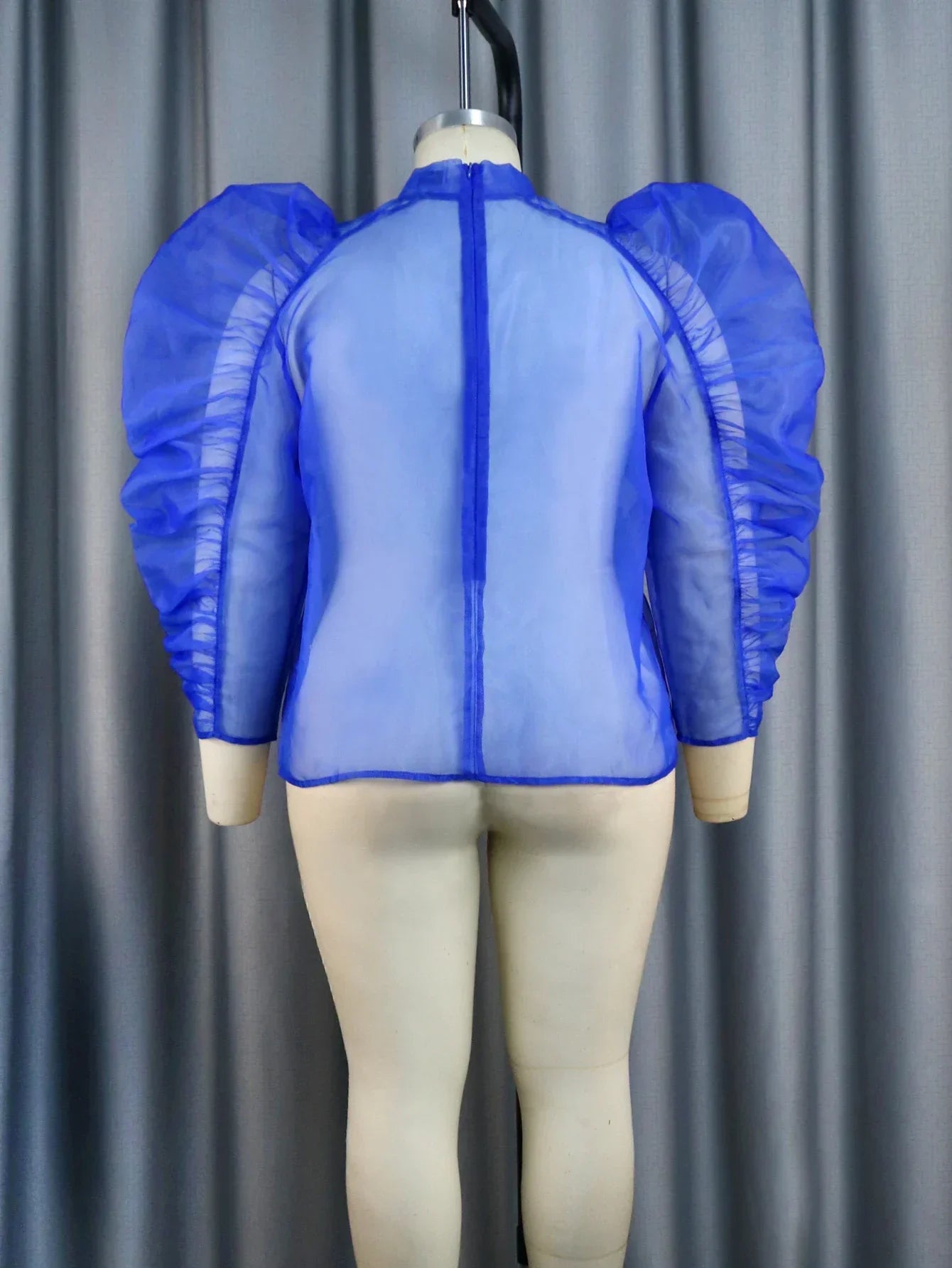 Women See Through Blouse Puff Sleeve Tops Sexy