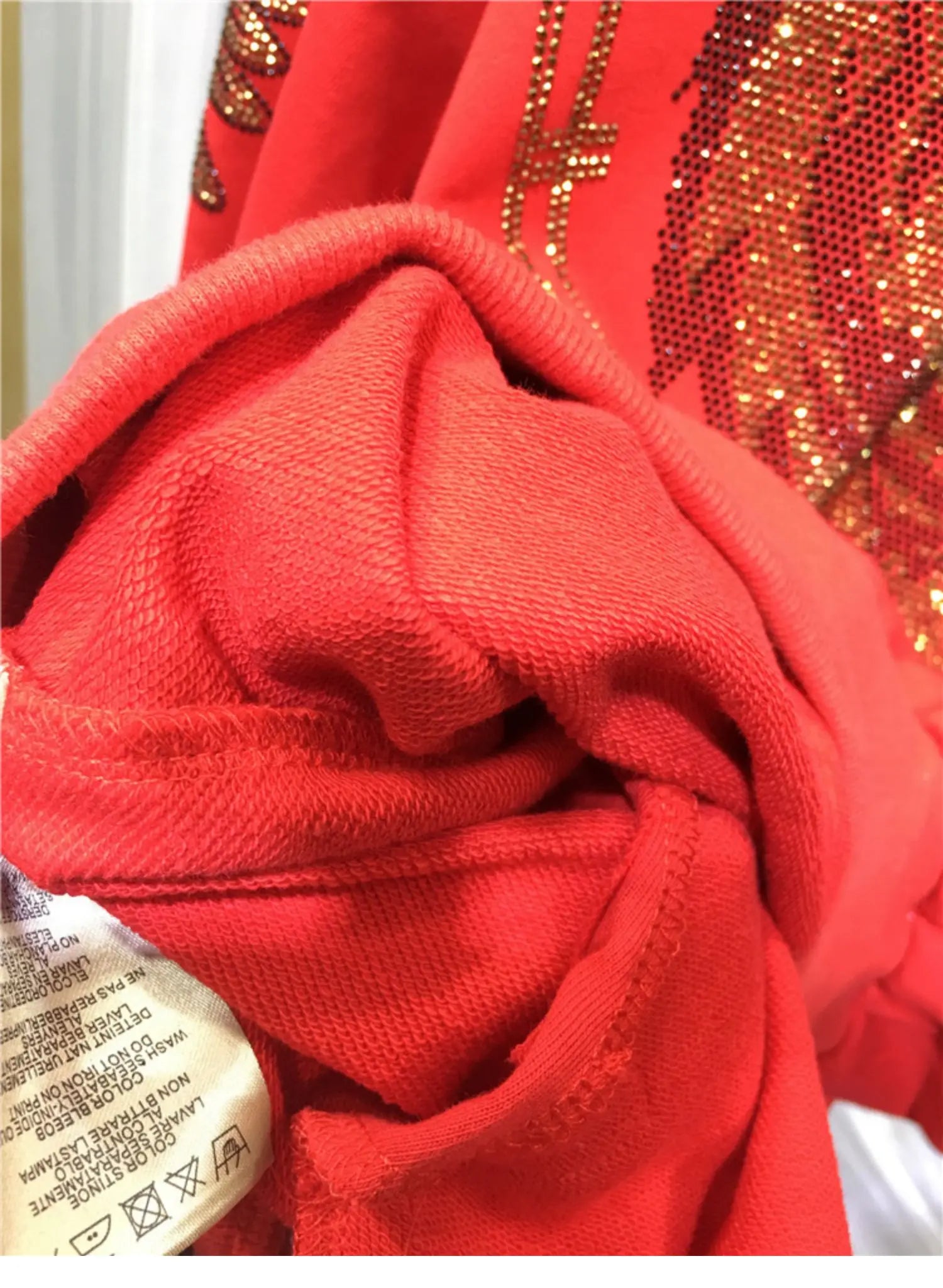 Women Clothing Rhinestones Zip Up Hoodies & Sweatshirt - Sweatshirt-Red / XXL / VIP Price is backordered and will ship as soon as it is back in stock.