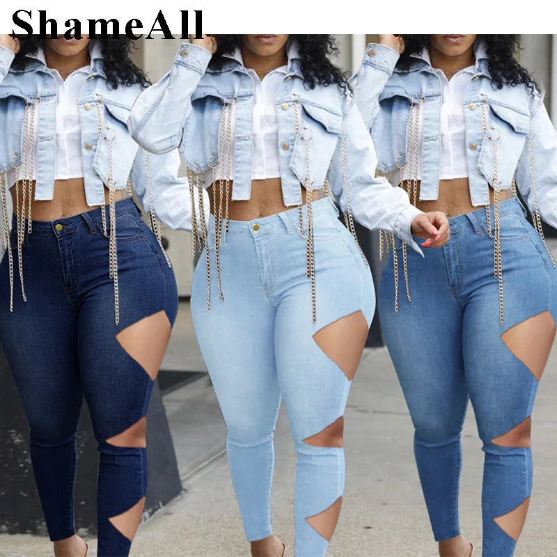 Street Asymmetrical Cut Hole Stretchy Skinny Jeans 3Xl