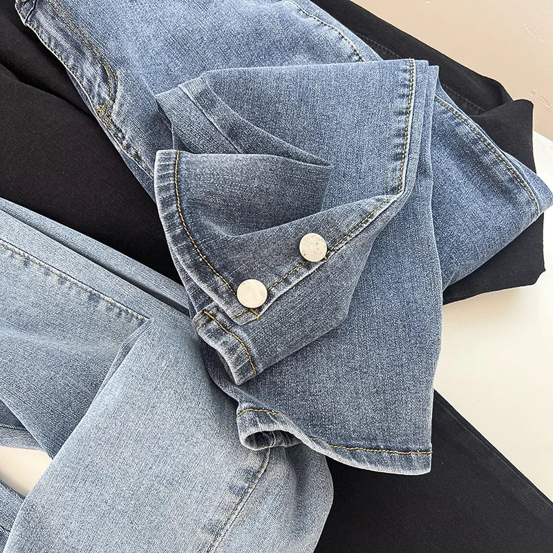 Spring Autumn Clothing Women Drainpipe Jeans Brief Denim