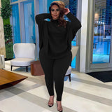 Knitted Women Piece Set Casual Solid Bat Sleeve - black / L / VIP Price is backordered and will ship as soon as it is back in stock.