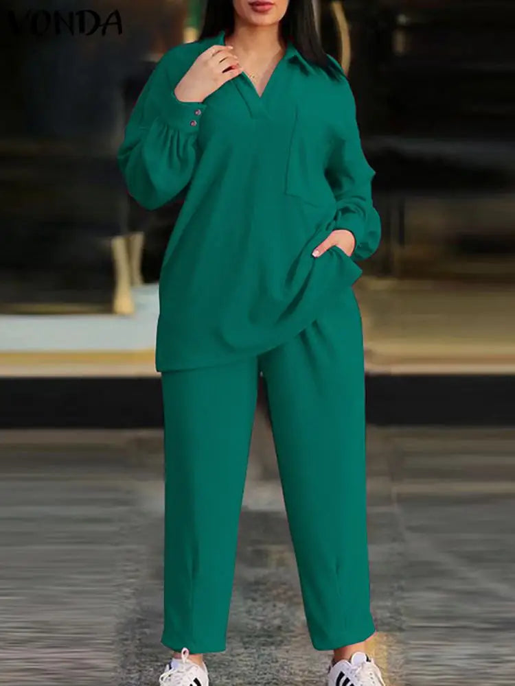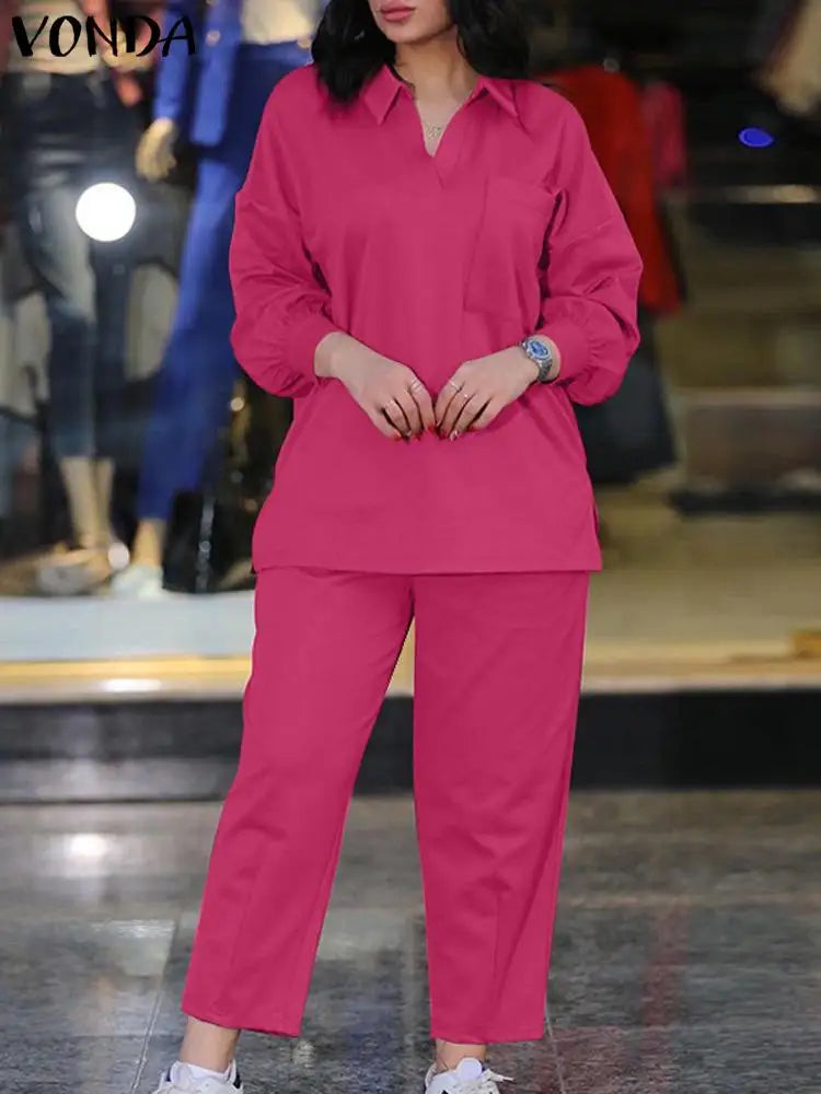 Vonda Fashion Women Pant Sets Long Sleeve Suits