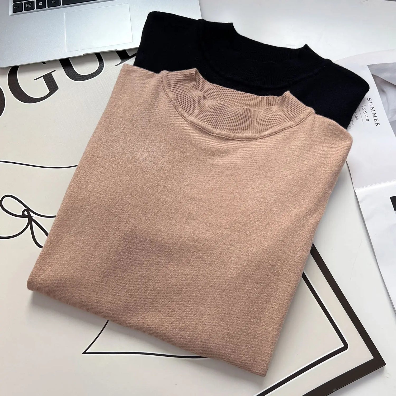 Fall Winter 100Kg Simple Temperament Beaded Mock Neck