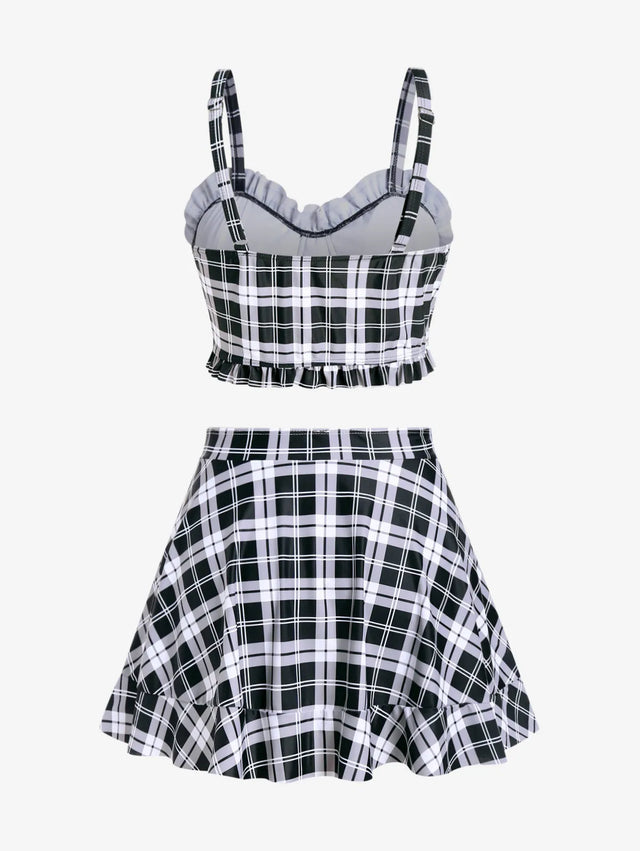 Rosegal Padded Plaid Three Piece Swimwear Women Tankini
