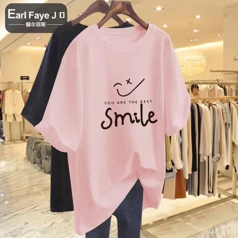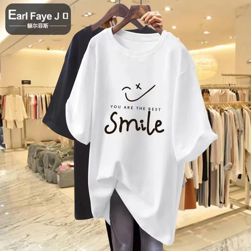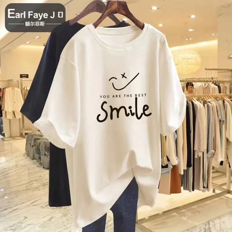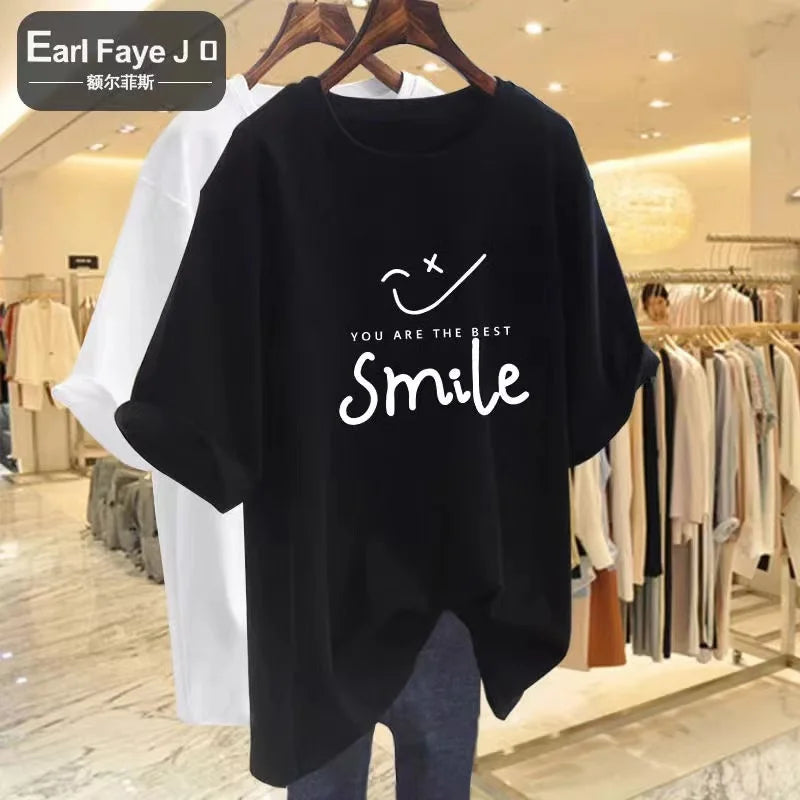 Summer Cotton T-Shirt Ladies Soft O-Neck Letter Print