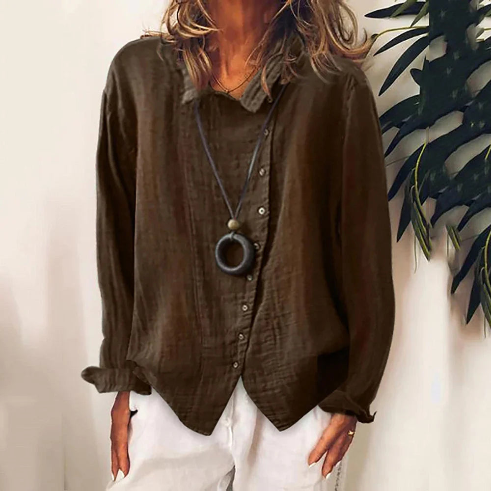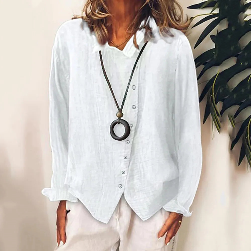 Women' Cotton Solid Long Sleeve Blouse Tops Baggy