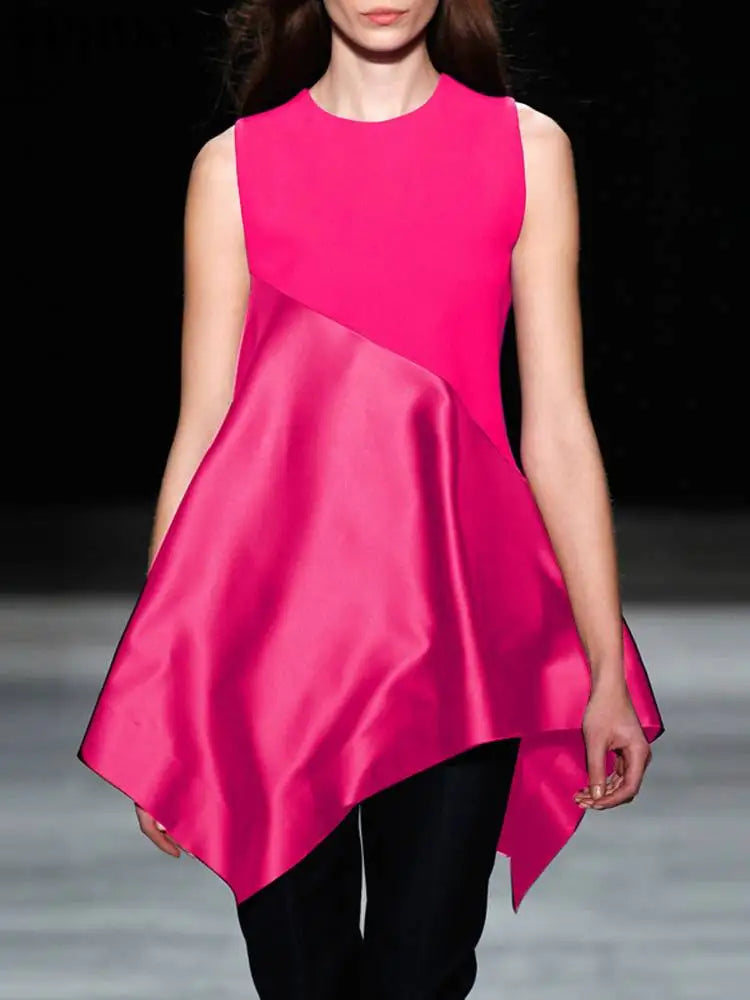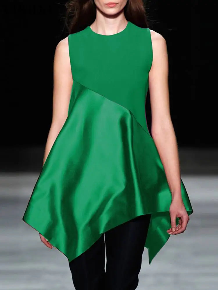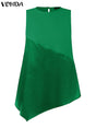 Vonda Summer Tanks Tops Silk Patchwork Solid