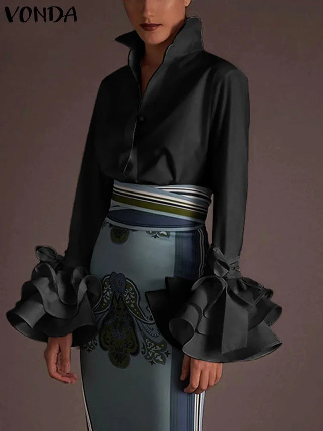 Model Number : Women Casual Long Sleeve Solid Spring Blouses Tops
