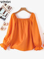 Vonda Oversized Tops Women Fashion Solid Blouse