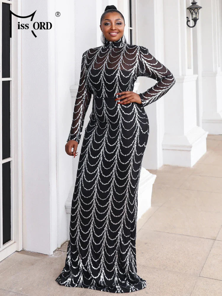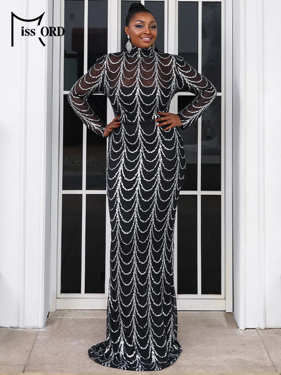 Missord Women Long Sleeve Dresses High Neck Sequins