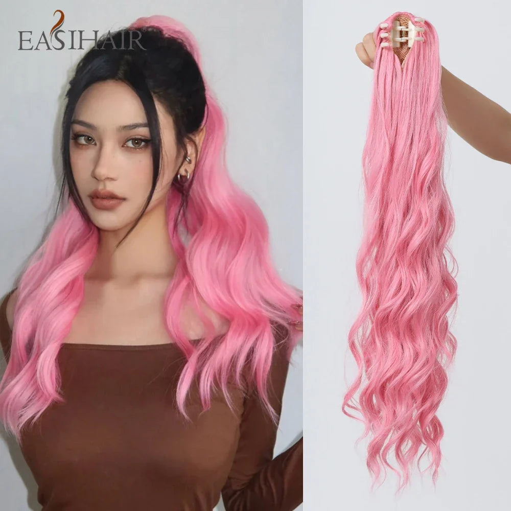 Synthetic Ponytail Pink Long Wavy Claw Clip Ponytail