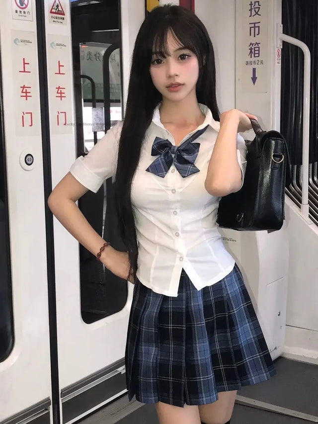 Summer New Fashion Women Korea School Uniform Style - full sleeve set / XL 60-65KG / VIP Price is backordered and will ship as soon as it is back in stock.