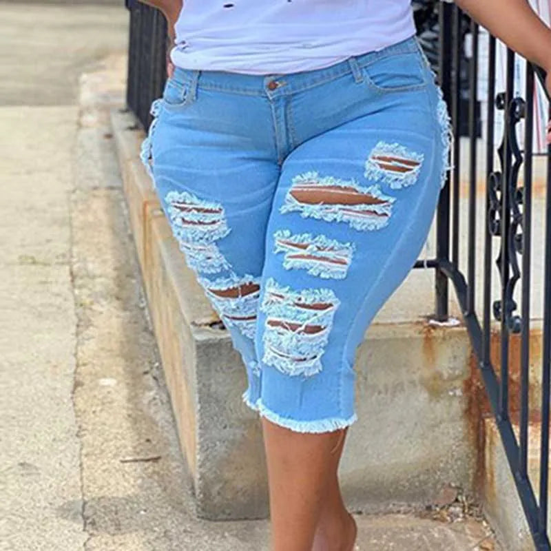 Women Plus Street Fringe Ripped Stretch Skinny Black - Black / L / VIP Price is backordered and will ship as soon as it is back in stock.