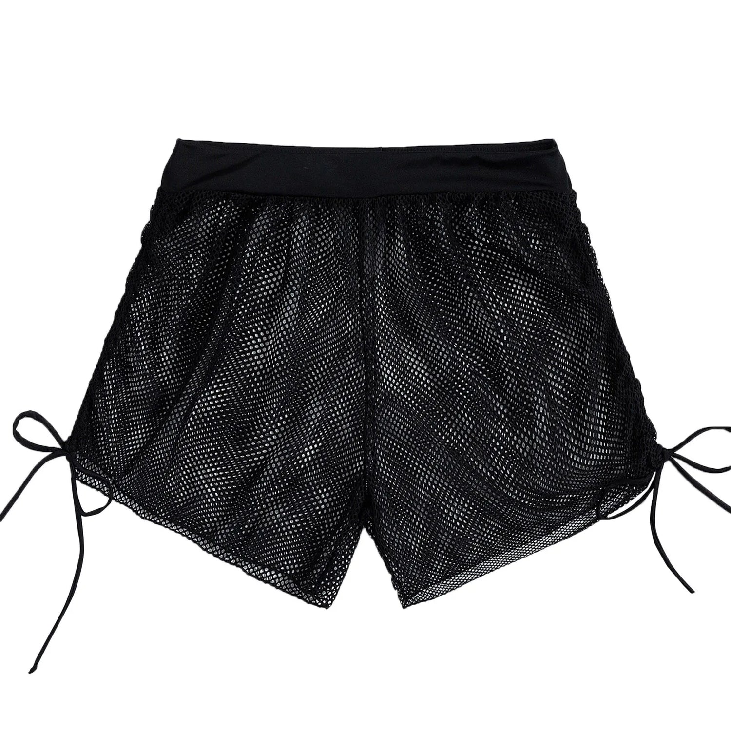 Women Side Drawstring Mesh Cover Up Shorts Perspective - Black / S / CHINA is backordered and will ship as soon as it is back in stock.
