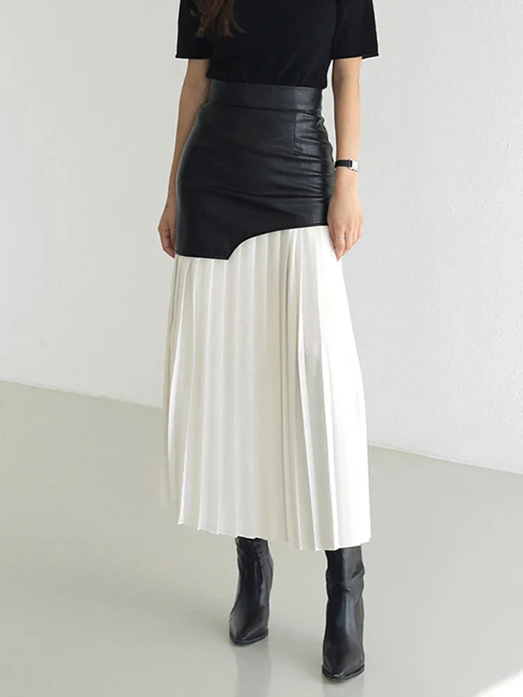 Twotwinstyle Casual Patchwork Pu Skirt For Women High