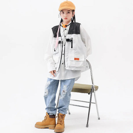 Children Hip-Hop Fashion Costume Girls Long Sleeves Tops